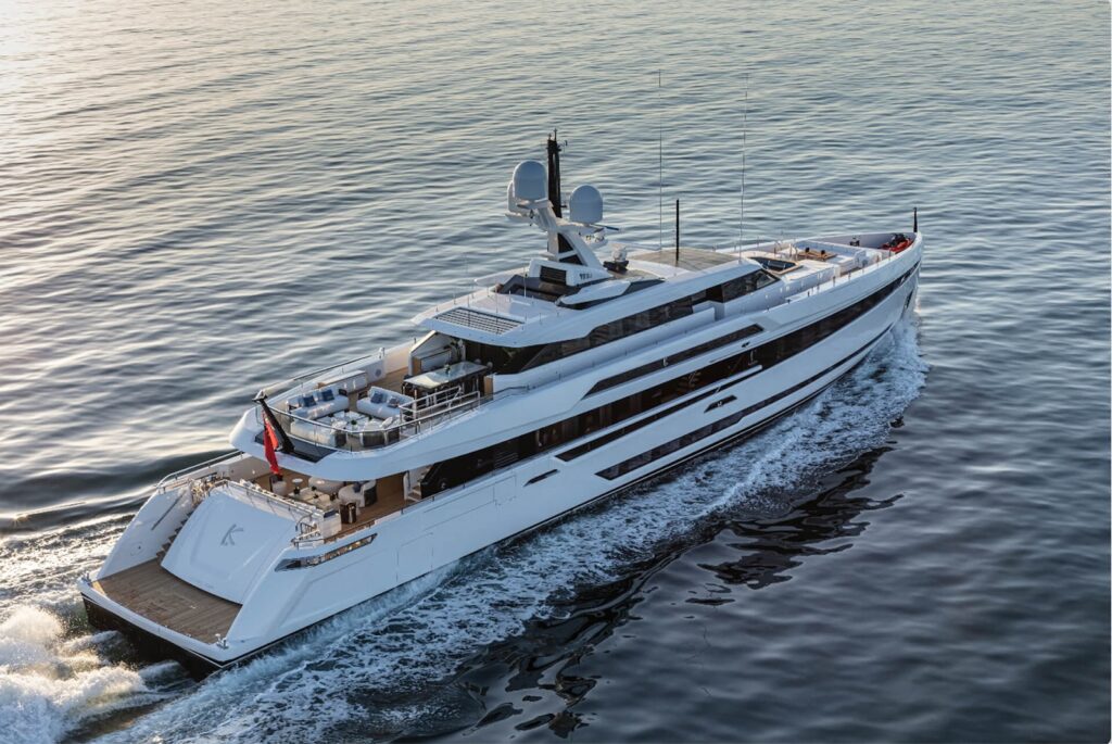 K2 oggi rappresenta una sintesi perfetta tra prestazioni, design e vivibilità di bordo. Lo yacht è un 500 GT sviluppato dal celebre designer Luca Dini, con linee esterne filanti e un profilo sportivo. Dotato di scafo ottimizzato per garantire alte prestazioni anche in mari impegnativi, K2 raggiunge una velocità massima di 21,5 nodi, grazie alla potenza di due motori MTU 16V 2000 M96L. È equipaggiato inoltre con pinne stabilizzatrici Naiad di ultima generazione che assicurano comfort sia in navigazione sia all’ancora.